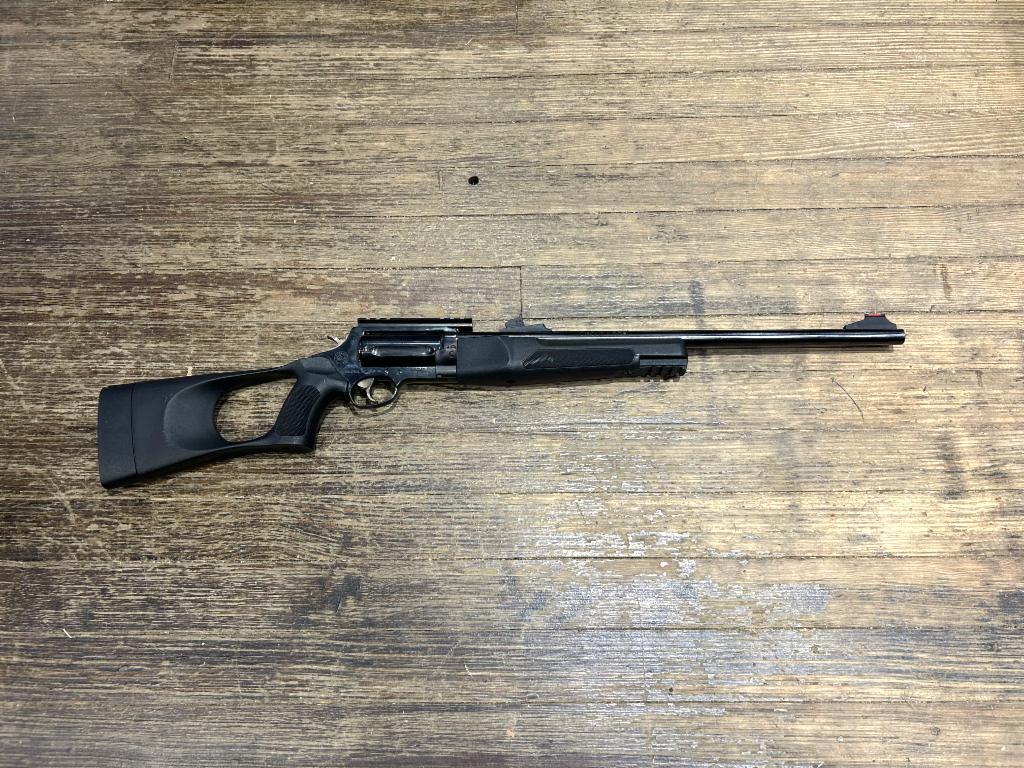 USED in Excellent Condition Taurus Circuit Judge Double Action/Single Action 410 Gauge/45LC Revolver Rifle with 18.5" Barrel. Blue Finish, Tactical Tuffy Stock, 5 Rounds