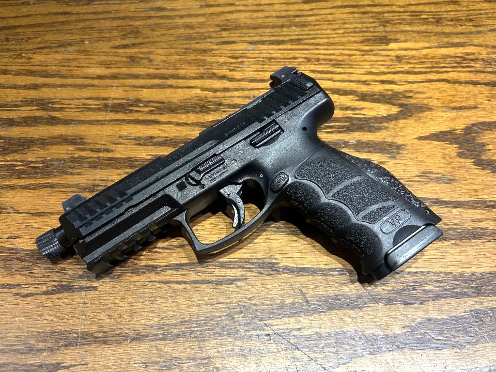 USED in Excellent Condition Heckler & Koch VP9 Tactical OR Full Size Polymer Frame Striker Fired Semi-Automatic Pistol in 9MM with 4.7" Threaded Barrel (M13.5X1 LH). Matte Black Finish, Optics Ready, Suppressor Height Tritium Night Sights. Comes in Original Box with 3-17RD Mags. Features Button Mag Release as God intended.