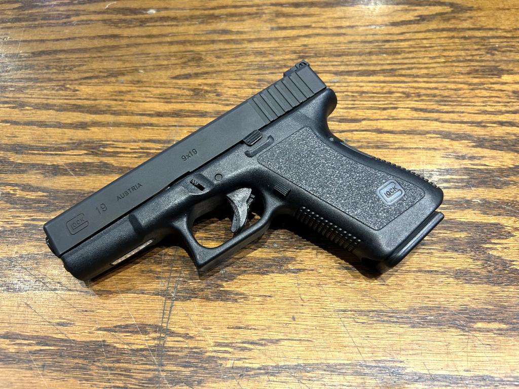 USED in Excellent to As New Condition Glock 19 Gen 2 Polymer Frame Striker Fired Semi-Automatic pistol in 9mm with 4" barrel. Features Adjustable Rear Sight. Comes in Original Tupperware with 2-15Rd mags