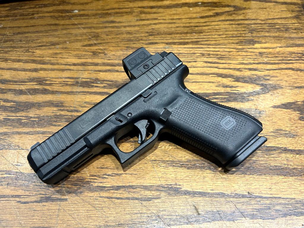 USED in As New Condition Glock 22 Gen 5 MOS Full Size Striker Fired Polymer Frame Semi-Automatic pistol in 40S&W with 4.5" Barrel. Comes with Holosun EPS Red Dot and AmeriGlo Suppressor Height Tritium Night Sights. Original Box with 3-15RD Mags