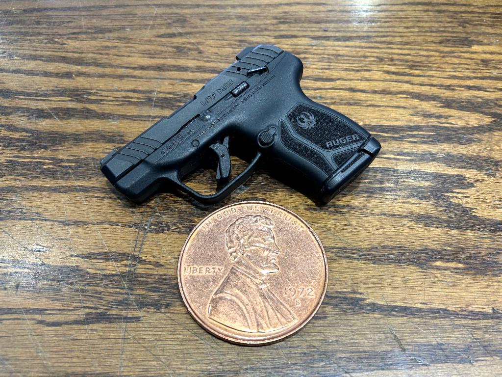 Ruger, LCP MAX, Double Action Only, Semi-automatic, Polymer Frame Pistol, Compact, 380 ACP, 2.8" Barrel, Nitride Finish, Black, Tritium Front Sight with White Outline and Drift Adjustable Rear Sight, Manual Thumb Safety, 10 Rounds, 1 Magazine, Includes Soft Pocket Holster and Magazine Loader