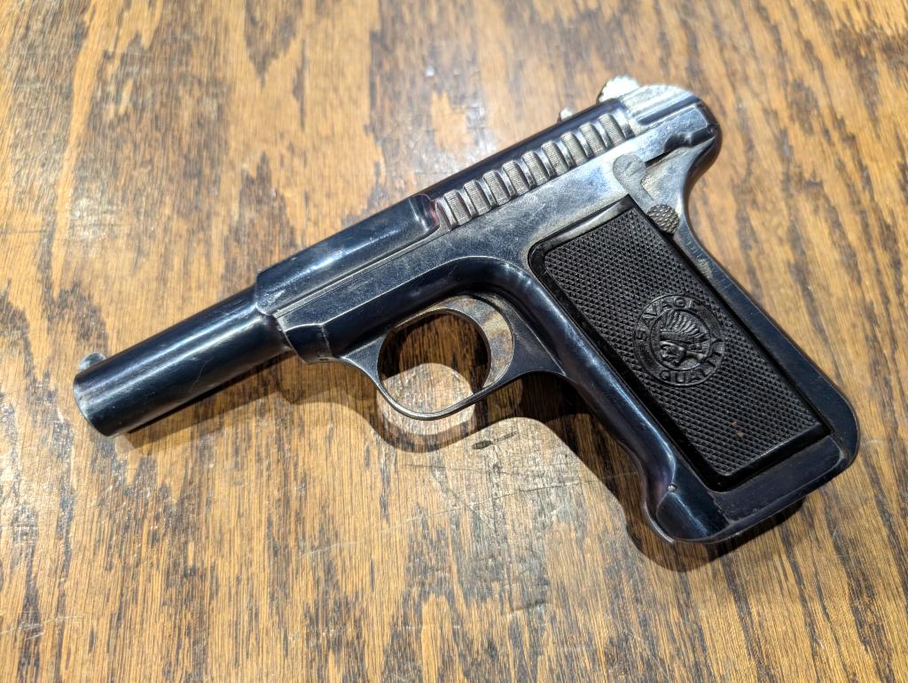 USED in Excellent Condition Savage 1907 Compact Steel Frame Semi-Automtaic Pistol in .32 Auto with 3.7" barrel. Produced 1909-1910 per SN. "Ten Shots Quick!". 1-Mag