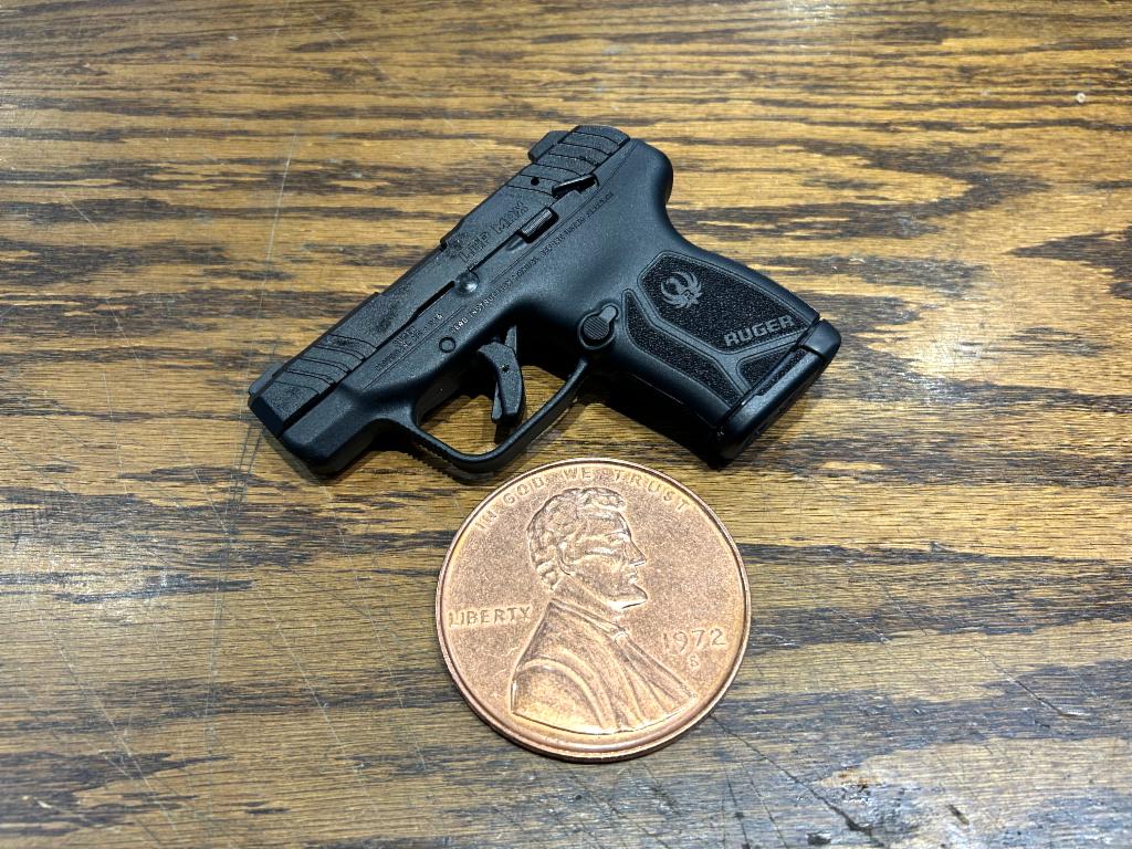 Ruger, LCP MAX, Double Action Only, Semi-automatic, Polymer Frame Pistol, Compact, 380 ACP, 2.8" Barrel, Nitride Finish, Black, Tritium Front Sight with White Outline and Drift Adjustable Rear Sight, Manual Thumb Safety, 10 Rounds, 1 Magazine, Includes Soft Pocket Holster and Magazine Loader