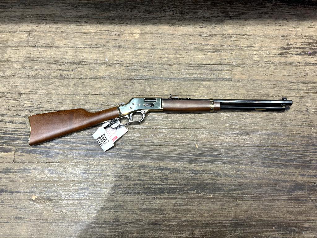 USED in AS NEW UNFIRED Condition Henry Repeating Arms Big Boy Lever Action Rifle in 357 Magnum/38 Special with 20" Octagon Barrel. Brass Receiver, Fully Adjustable Semi Buckhorn Sights, American Walnut Stock, 10 Rounds. Original Box