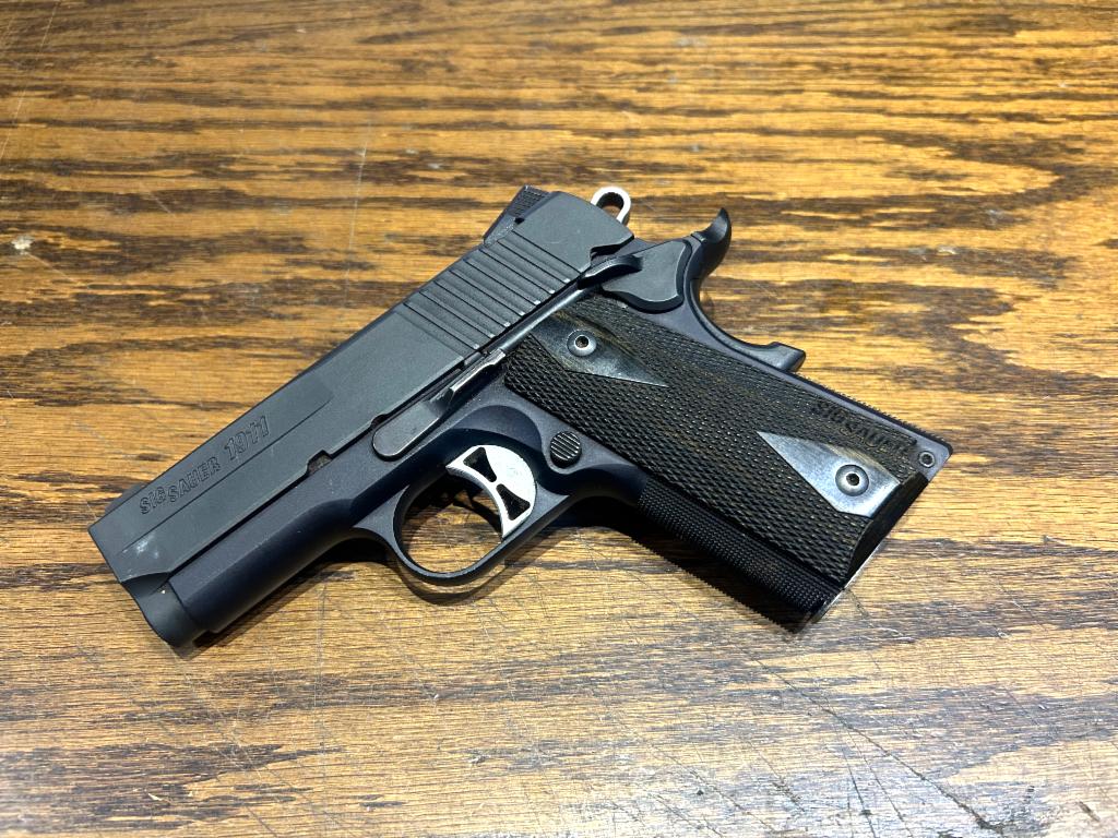 USED in excellent Condition Sig Sauer 1911 Ultra Compact Nitron Semi-Automatic Pistol in .45 Auto with 3.25" Bull Barrel. Comes in Original Box with 2-7RD Mags