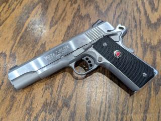 Good condition in original box. Stainless finish, black grips, two magazines. Finish has some minor blemishes but is 95%.
