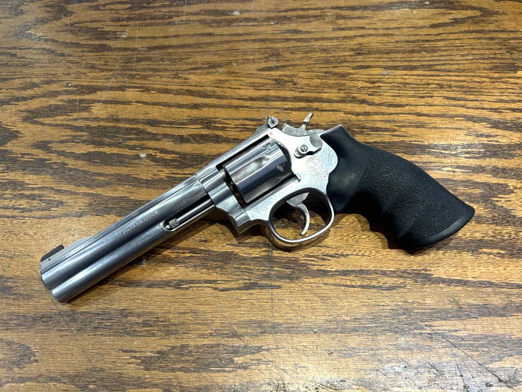 USED in Excellent Condition Smith & Wesson Model 617-1 Double/Single Action K-Frame Revolver in 22LR with 6" Barrel. Satin Stainless Steel Finish, Rubber Grips, Adjustable Sights, 6Rd Cylinder