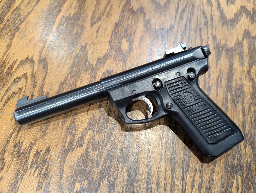 Good condition semi-auto pistol. First gen 22/45, appears to be a Mark II. Blued finish, polymer 1911-style grip, one magazine. Finish has some minor wear, probably 95%+