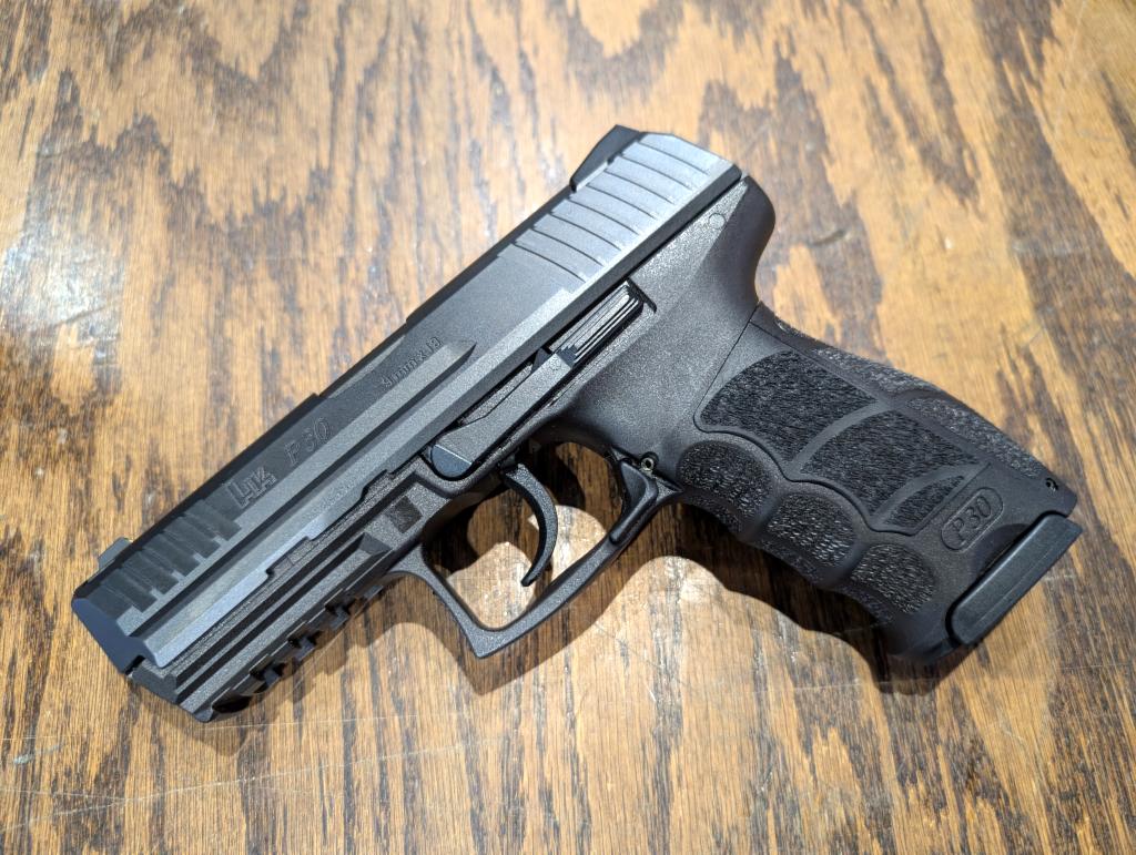 Excellent condition pistol in original box. Glow-in-the-dark sights, accessory rail, interchangeable grip panels, two 15-round mags, paperwork, lite LEM trigger.