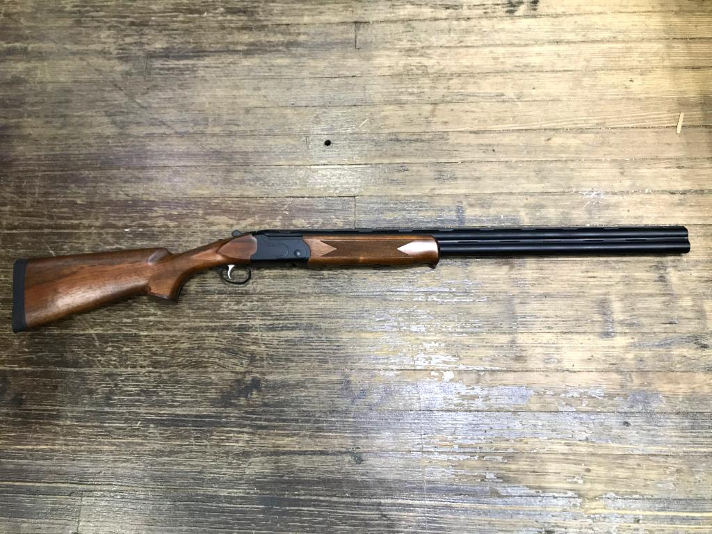 Used in AS NEW Condition Stevens 555 Over/Under Shotgun in 12 Gauge with 28" Barrel 3" Chamber. Black with Walnut Stock. Comes in Original Box with 5 Choke Tubes.