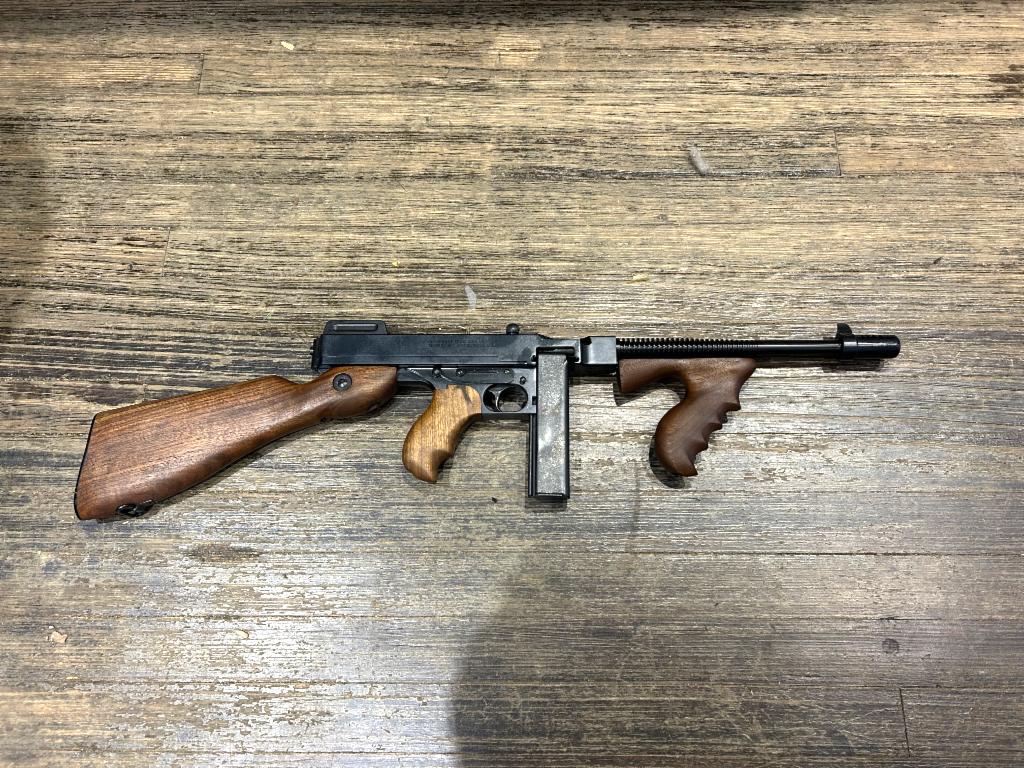 USED in AS NEW Condition Auto Ordnance 1927A1 Semi-automatic SBR (Short Barreled Rifle) in 45ACP with 10.5" Barrel. Blued Finish, Walnut Stock, Adjustable Sights, 1-20Rd Stick Magazine, (Will Accept 30Rd Drum Magazine). Original Carry Case
