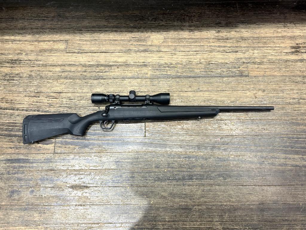 USED in good condition Savage, Axis II XP Bolt Action Rifle in 243 Winchester with 20" Barrel. Black Finish, Synthetic Stock, Right Hand, Bushnell Banner 3-9x40mm scope, 1 Magazine, 4 Rounds. Light rust/pitting on barrel.