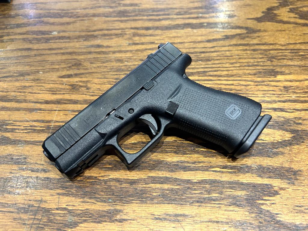 GLOCK, 43X M.O.S., Striker Fired, Semi-automatic, Polymer Frame Pistol, Sub-Compact, 9MM, 3.41" Barrel, Glock Marksman Barrel, nDLC Finish, Black, No Finger Grooves, Fixed Sights, Modular Optic System, 10 Rounds, 2 Magazines
