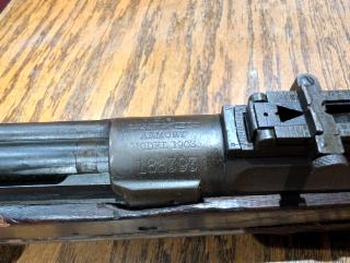 Good condition early 1903, likely 1907 production date. Arsenal rebarrelled in September of 1919. Original sling. Stacking swivel broken. Stock and finish show wear and blemishes appropriate with age and use of the rifle.