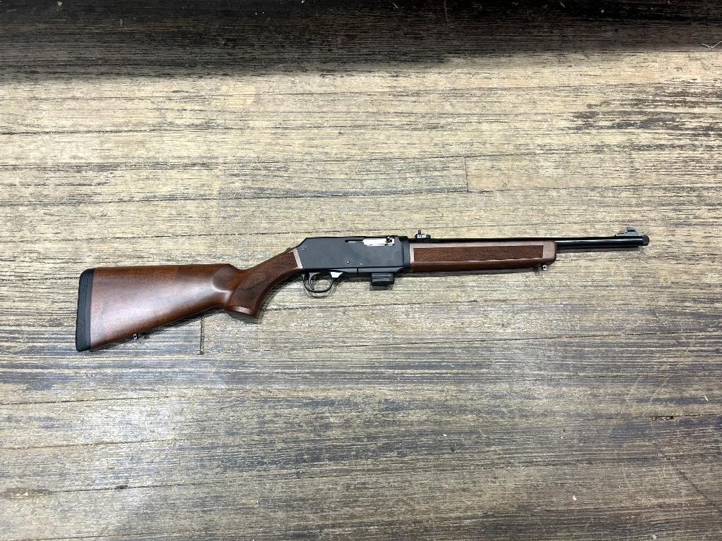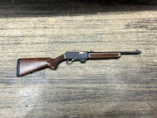"USED" in AS NEW UNFIRED Condition Henry Repeating Arms Homesteader Semi-automatic Rifle in 9MM with 16" Threaded Barrel. Walnut Furniture, Black. Original Box with 3 Henry mags (2-10RD, 1-5RD)