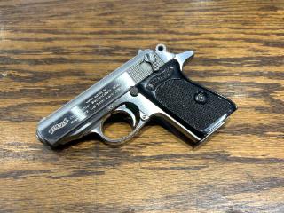 USED in Excellent Condition Walther PPK Compact DA/SA Semi-automatic Steel Frame Pistol in .380 Auto with 3.3" Barrel. Stainless Matte Finish, Fixed Sights, Slide Mounted Safety/Decocker. Original box with 2-6RD Mags