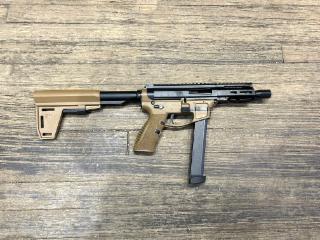 GForce Arms Jawbone AR Style Semi-Automatic Pistol in 9mm with 5" Barrel. Features 45 degree Ambi Safety Lever, Ambi Bolt Catch/Release, Ambi Mag catch/Release. Comes with Stabilizing Brace and 2-34RD Glock Style Mags