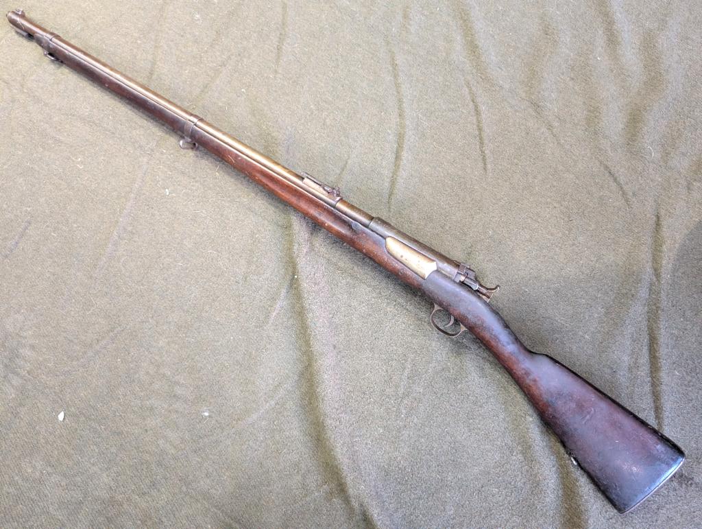USED in Good Condition Danish Krag-Jorgensen Bolt Action Rifle in 8x58R(?) with 32" barrel. Produced 1910