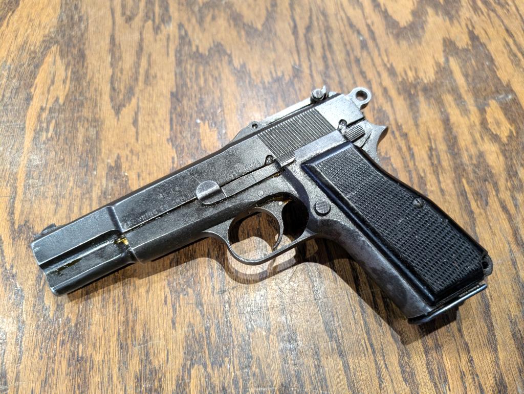 USED in Very Good Condition Canadian Inglis Manufacture Mk. I* Hi-Power Semi-Automatic Pistol in 9mm with 4.6" Barrel. Fitted for stock/holster with long range rear sight. 1944-45 Production per SN. 1 Mag