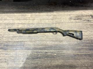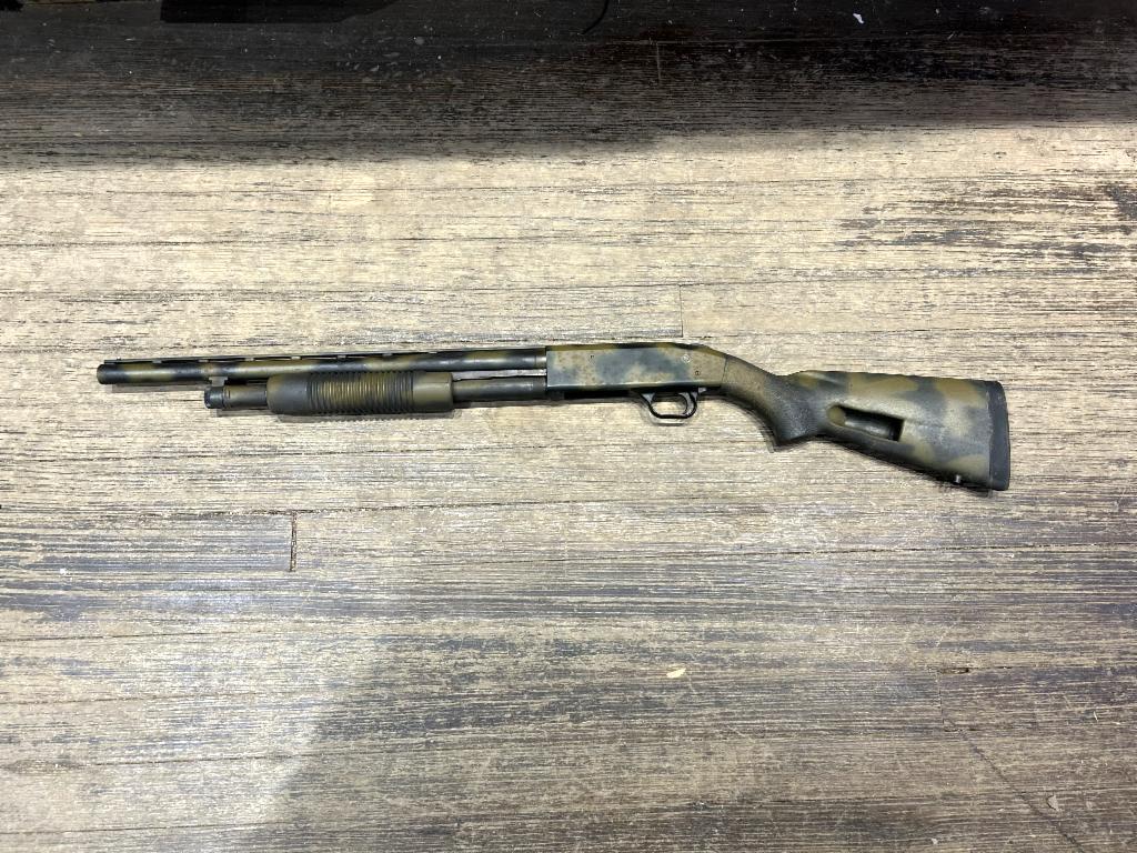 USED in Excellent (albeit dusty) Condition Mossberg 500A Pump Action Shotgun in 12GA with 20" Barrel and 3" Chamber. Features "Speed Feed" Stock with shell storage compartment