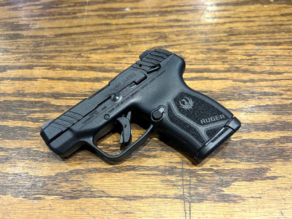 Ruger, LCP MAX, Double Action Only, Semi-automatic, Polymer Frame Pistol, Compact, 380 ACP, 2.8" Barrel, Nitride Finish, Black, Tritium Front Sight with White Outline and Drift Adjustable Rear Sight, Manual Thumb Safety, 10 Rounds, 1 Magazine, Includes Soft Pocket Holster and Magazine Loader