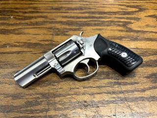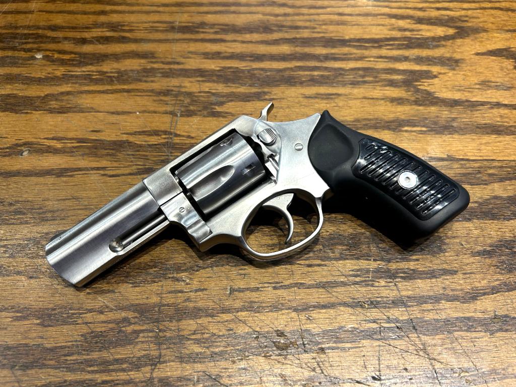 USED in As New Condition (Appears Unfired) Ruger, SP101, Double/Single Action, Revolver, Small Frame, 357 Magnum, 3" Barrel, Stainless Steel, Satin Finish, Silver, Black Rubber Grips with Polymer Inlay, Black Ramp Front and Fixed Rear Sights, 5 Rounds