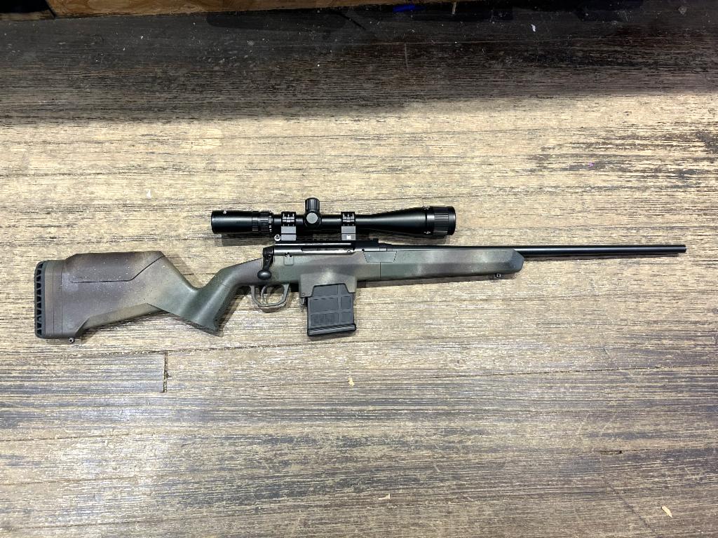 USED in Excellent Condition Savage Axis Bolt Action Rifle in .308 Winchester with 22" barrel. Comes with 6-24X Scope and 2 Stocks (1 - OEM Camo with 4Rd Mag, 1 - Magpul Hunter Lite with 10Rd AICS Pattern Mag, Installed)