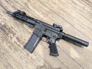 USED PSA-15 in 300blk. comes with fiber optic flip up iron sights, 9" 1:7 twist barrel, a2 birdage, magpul sling swivel rear plate.