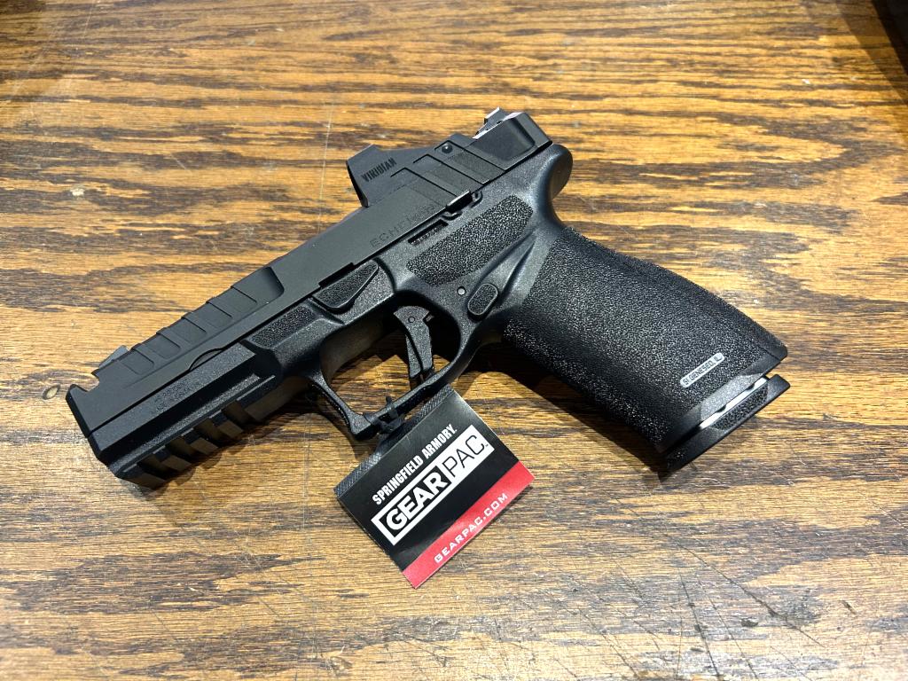 Springfield, Echelon, Semi-automatic, Striker Fired, Polymer Framed Pistol, Full Size, 9MM, 4.5" Barrel with Integral Compensator, Melonite Finish, Black, Optics Ready Slide, Front White Dot Sight, Tactical Rack U-Dot Rear Sight, Viridian Green Dot, 4 Magazines, (3)-17 Round and (1)-20 Round, Includes Range Bag